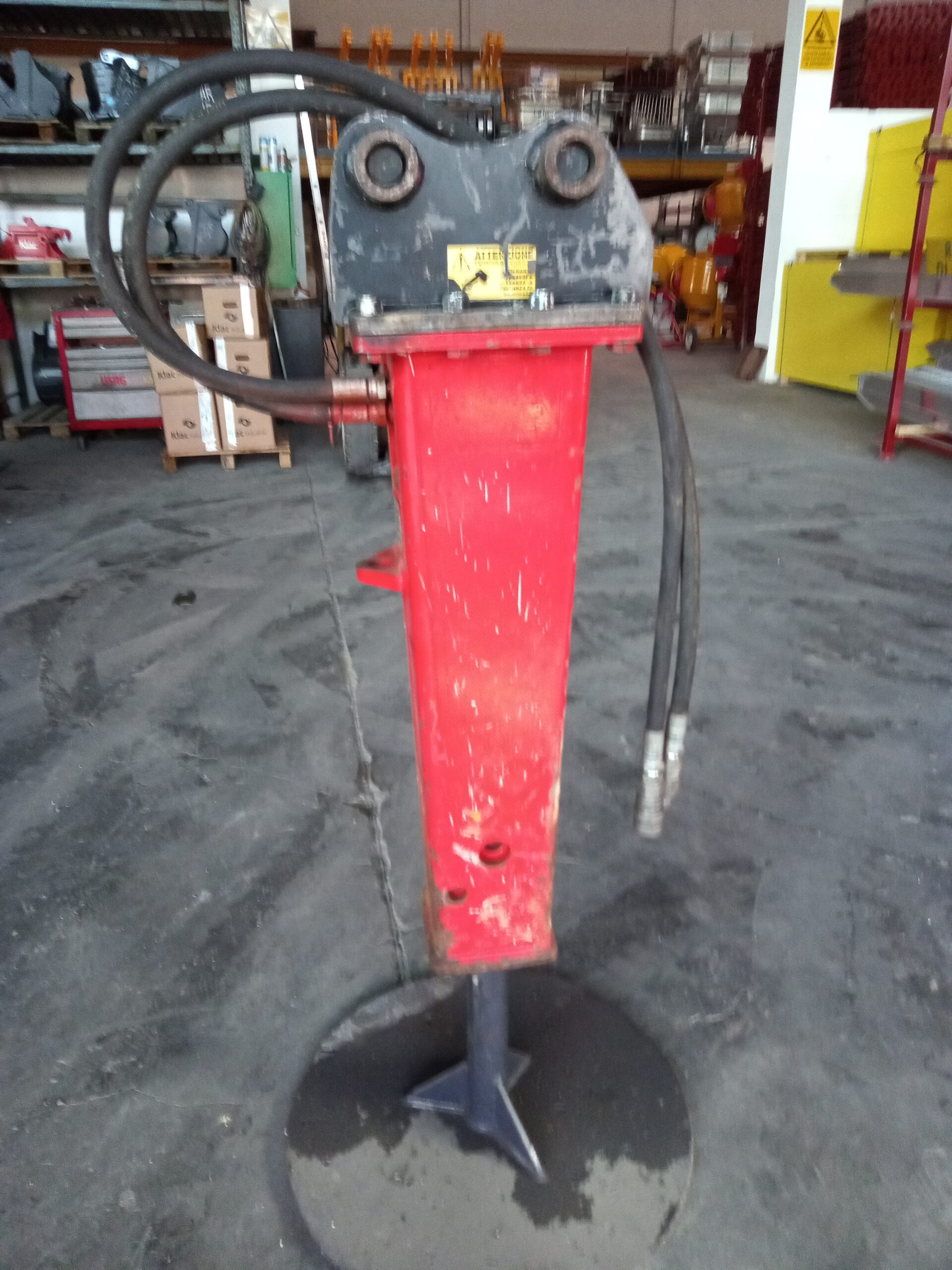 Martello demolitore PROMOVE MDH 150 , peso 160 kg , completo di attacco fisso , ideale per mini escavatori da 25qli-40qli , pressione di esercizio 120 bar , portata 29 l/min , completo di tubi idraulici e attacchi rapidi. OTTIME CONDIZIONI